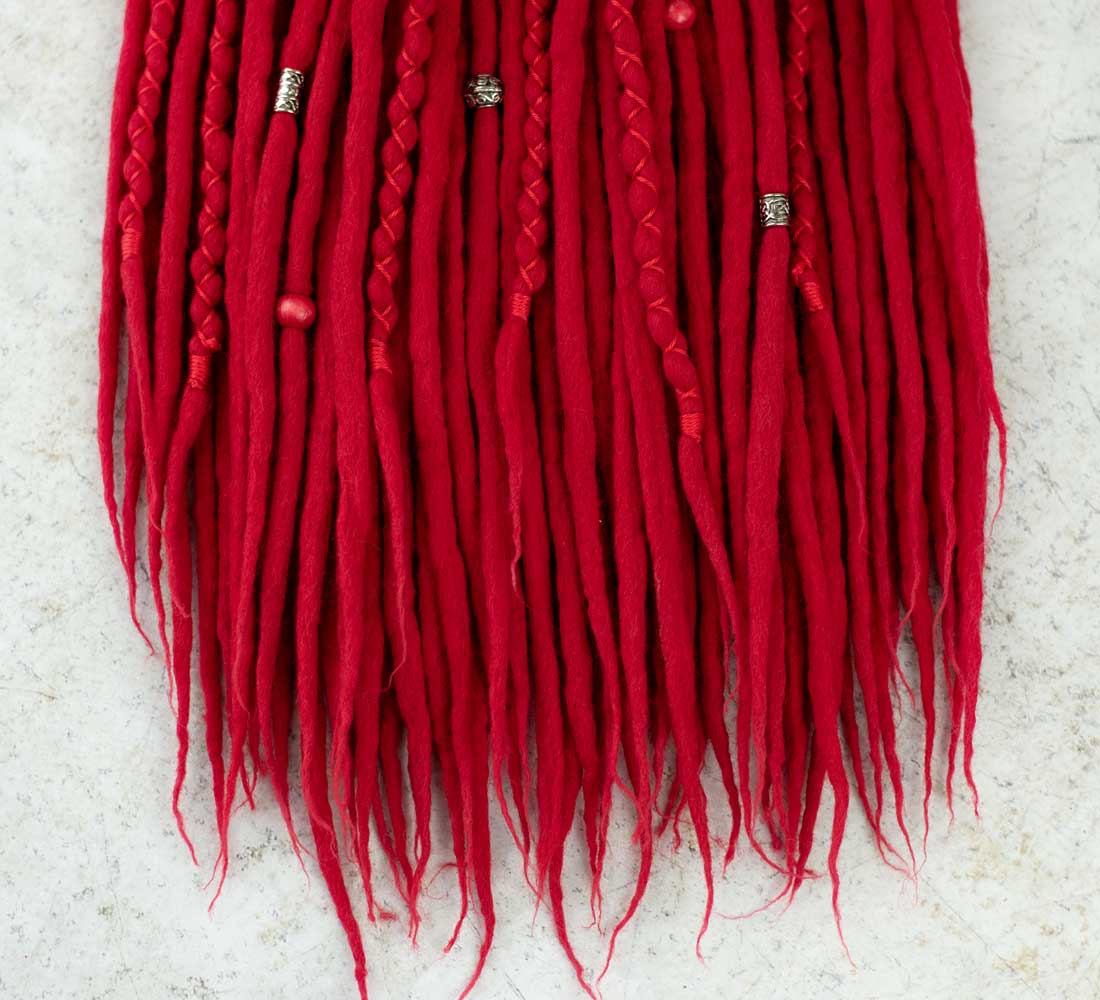 Poppy red wool dreadlock extensions