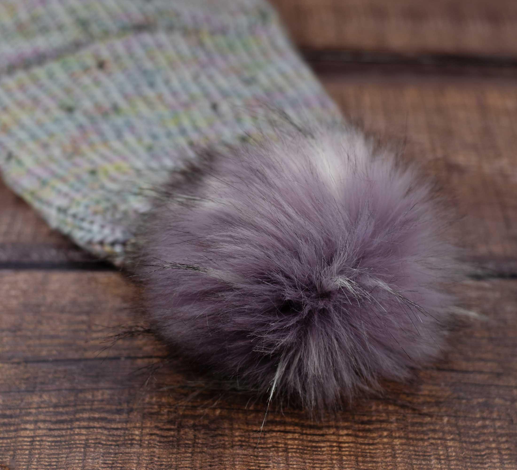 The faux fur pompom is attached to the beanie with a snap. Can be removed for washing.