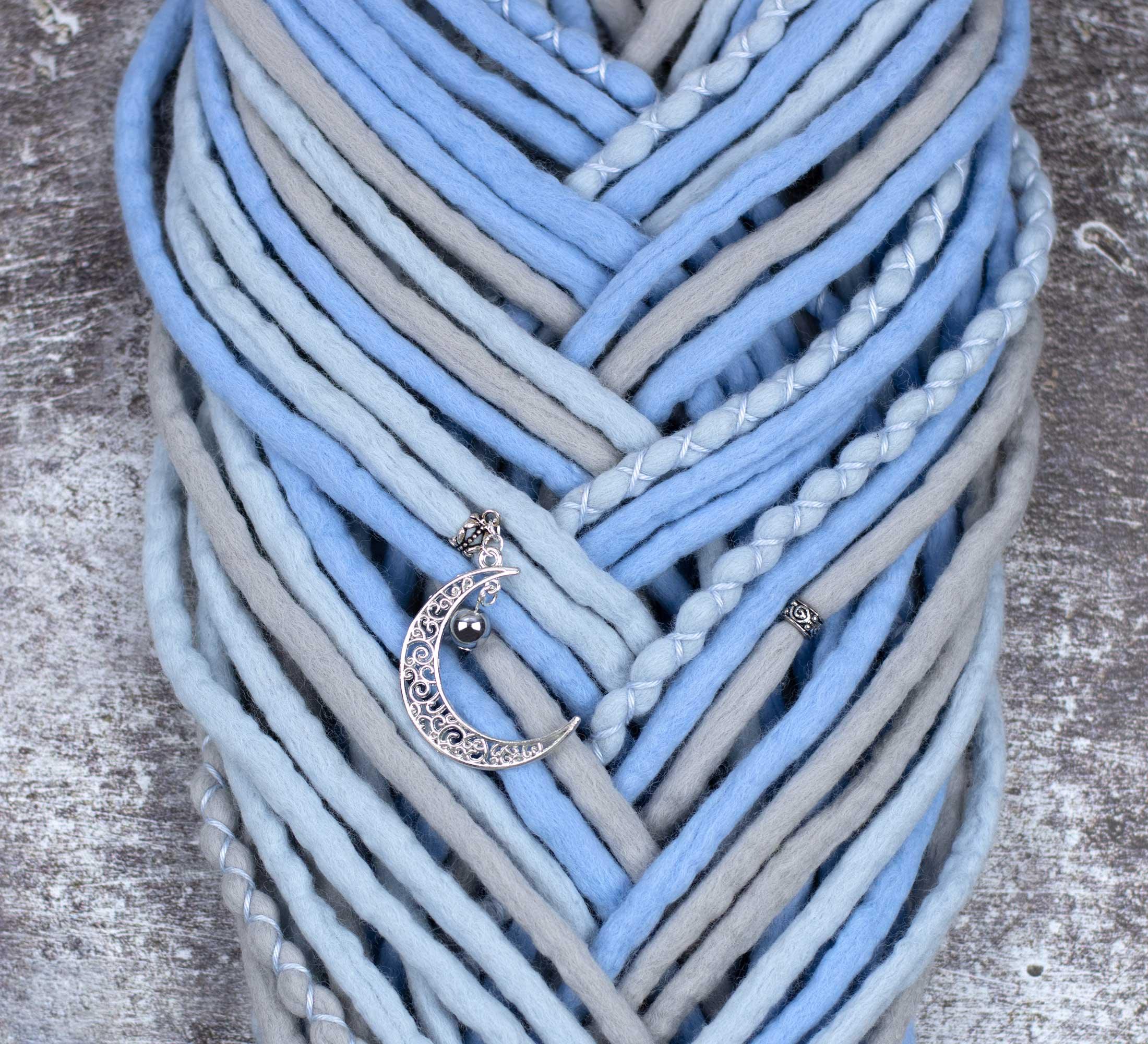 Our wool dreadlocks made of extra fine merino wool are not itchy, due to the super thin wool fibers of 18-19 microns.